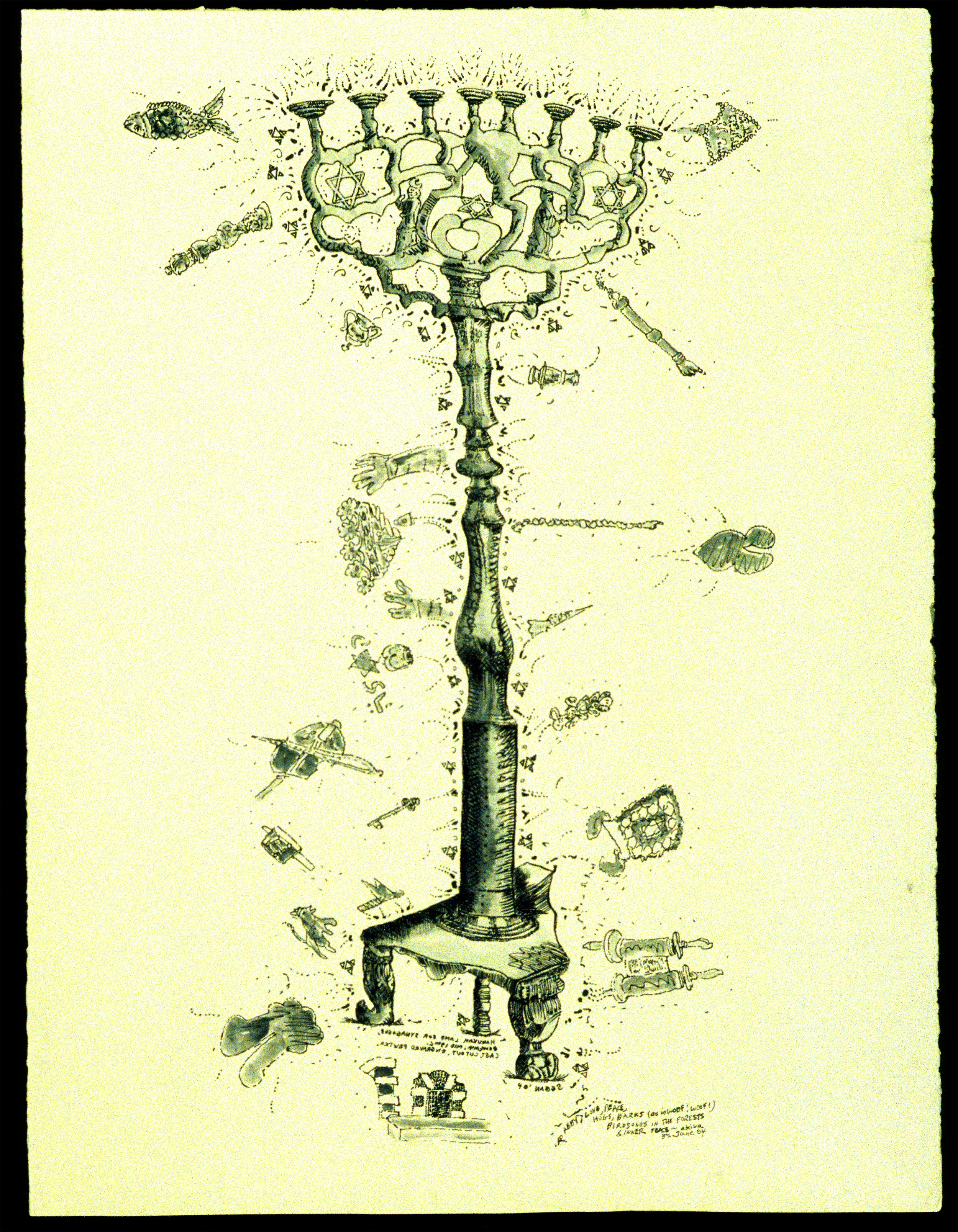 The imagery was inspired by photos seen in the 1983 book "Precious Legacy - Judaic Treasures from the Czechoslovak State Collections" (ed. by David Altshuler, pub. by Summit Books & The Smithsonian's Traveling Exhibition Services).