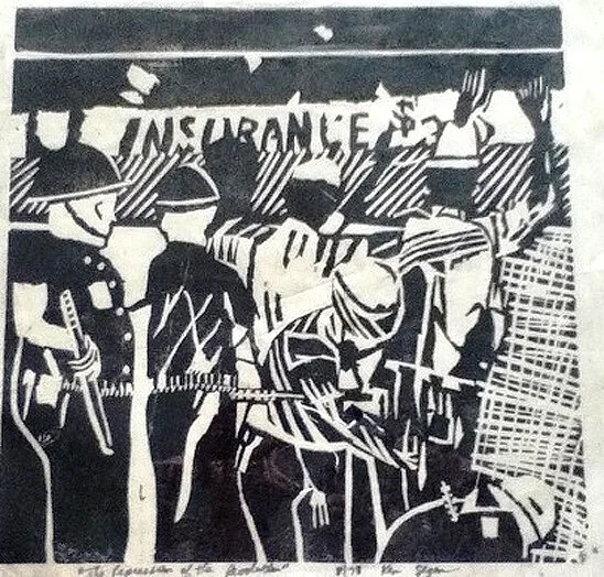 I don't recall where I derived the image from; perhaps a photo. I now find the title (I'm writing this background note, Oct. 2018) mildly unfortunate if intriguing. Representative, perhaps, of either youthful idealism or a youthful age interpretative view of society.